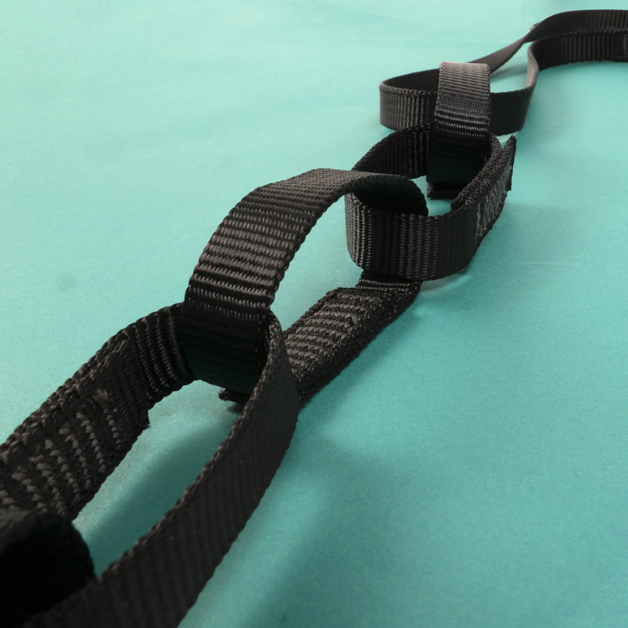 An innovative loop chain for Aerial Yoga rigging that doesn't require O rings for your fabric attachment.